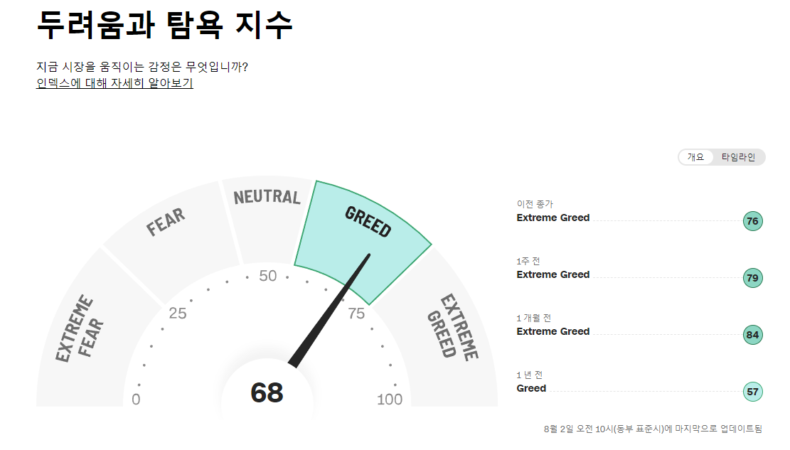 CNN Money에서 유래한 이 지수는 시장의 감정 상태를 공포와 탐욕으로 구분하는 리트머스 테스트 역할을 합니다.