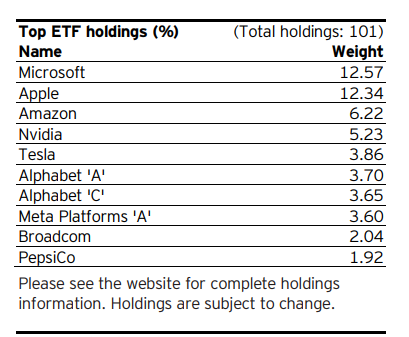 마이크로소프트, 애플, Nvidia, 아마존, 테슬라는 지수의 무게를 43.8% 차지하고 있습니다.