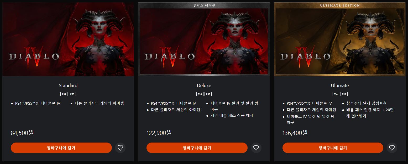 디아블로4 가격은 스탠다드 84,500원. 디럭스 122,900원. 얼티밋 136,400원으로 각기 다른 혜택을 얻을 수 있습니다.