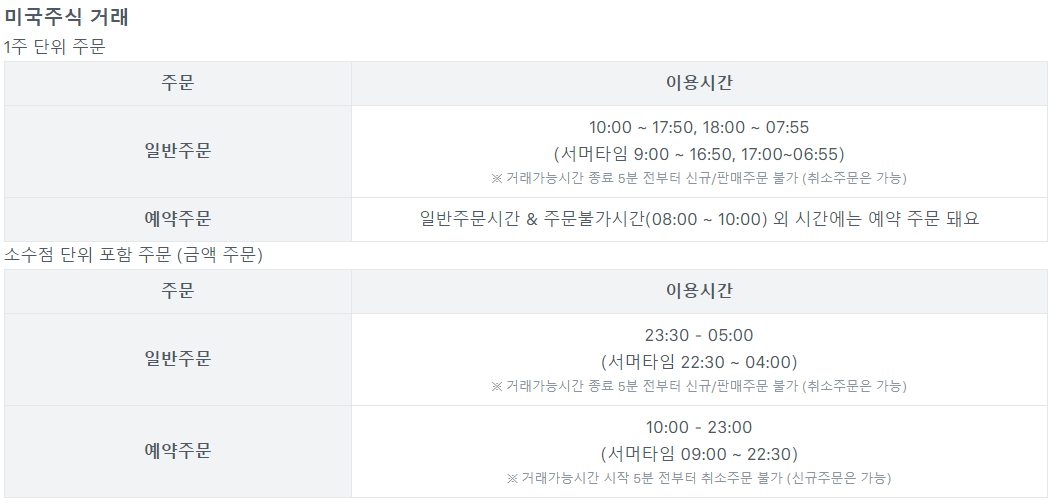 | 구분 | 프리마켓 거래시간 | 일반 거래 시간 | 애프터마켓 거래 시간 |