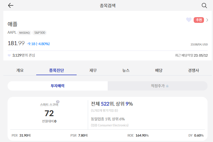 1. 초이스스탁US - 종목진단 및 분석, UI가 보기 간편하다