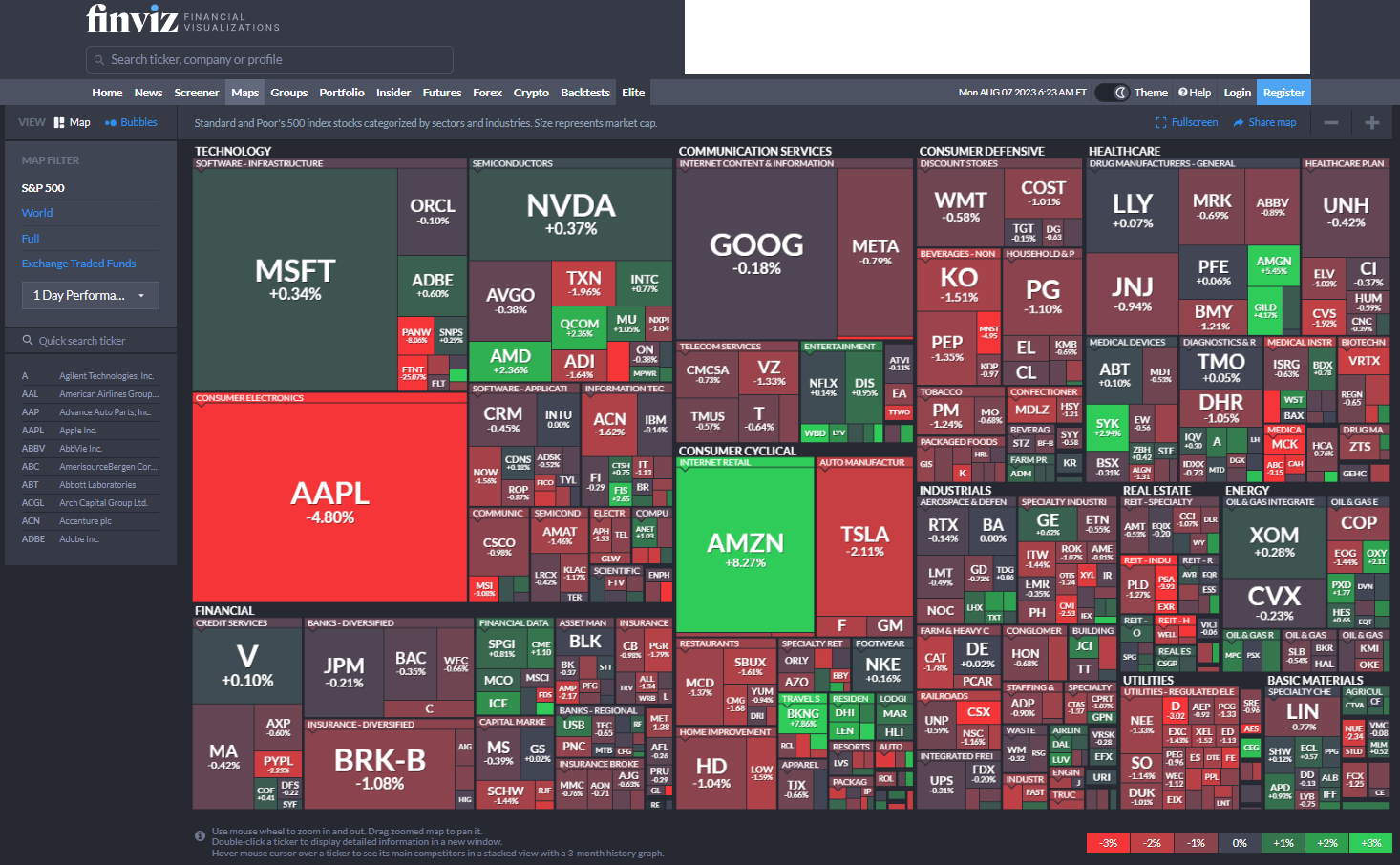 3. Finviz(핀비즈) - S&P500 시각화로 주식시장을 한눈에 파악