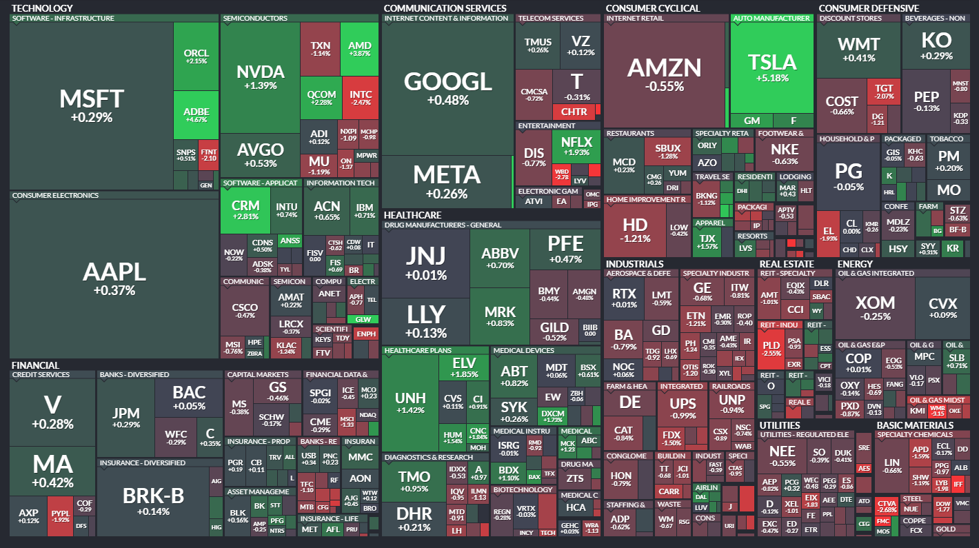 어도비는 비즈니스 고객들에게 AI 툴 '파이어플라이' 제공으로 인해 +4.95% 상승했습니다. 이는 어도비의 AI 기술 활용에 대한 투자자들의 긍정적인 반응을 보여줍니다.
