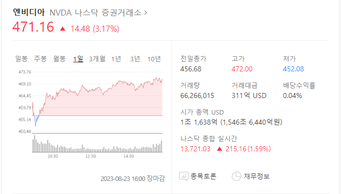 나스닥에서도 엔비디아 주가는 1.6% 상승하는 등의 긍정적인 반응을 보였습니다. 앞으로도 엔비디아의 성장세와 기술 혁신에 대한 기대가 높아질 것으로 보입니다.