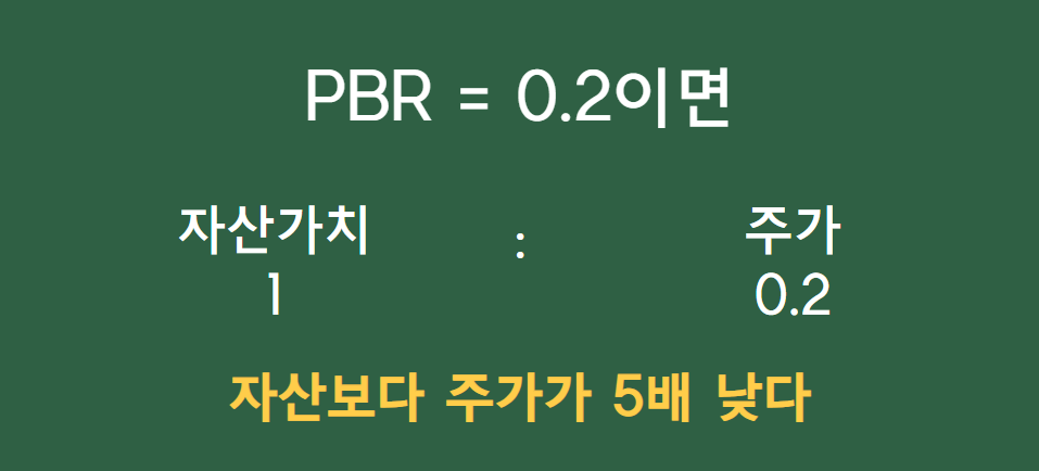 PBR이 1보다 낮다는 것은 주식의 가치가 그 회사의 자산가치보다 낮다는 것을 의미하며, 이 경우 주식이 저평가되었다고 판단할 수 있습니다.(회사 주식 100% 매수하고 자산을 다 팔아도 이득)