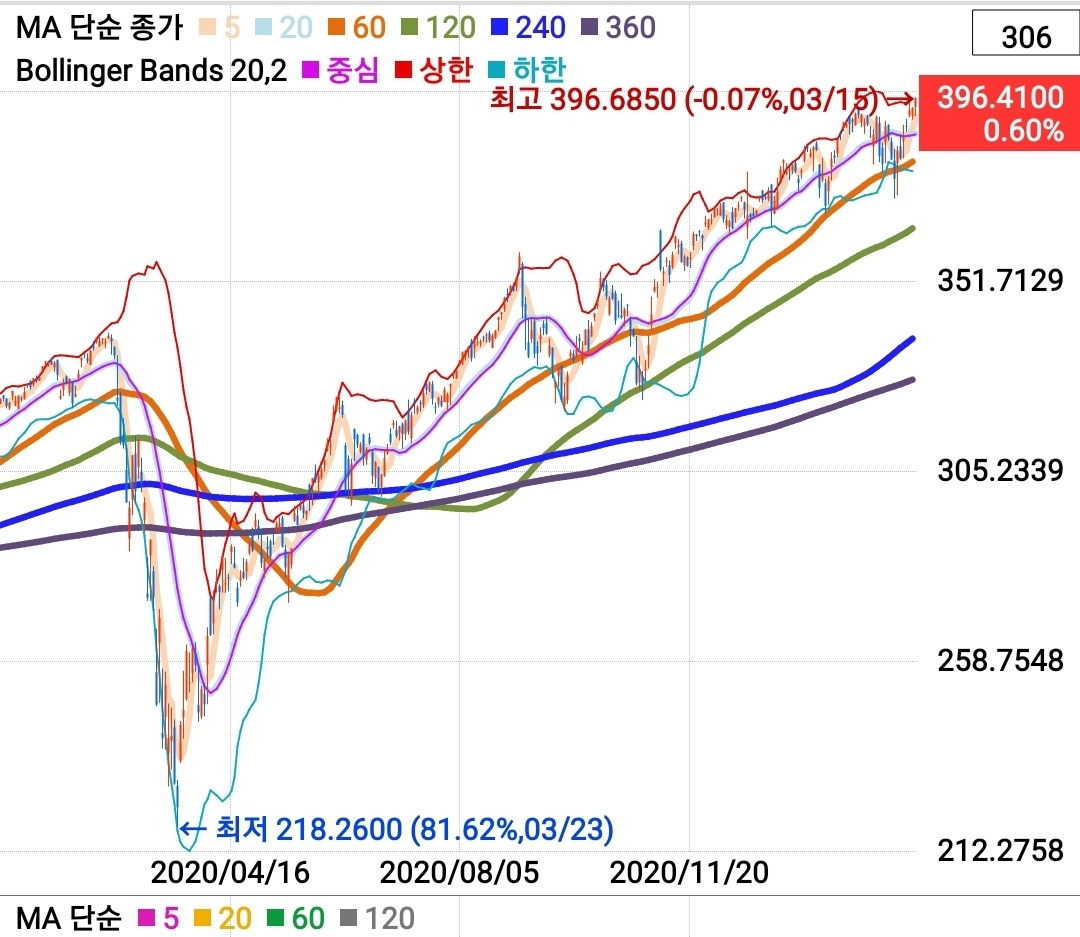 2020년 초, 코로나 발생 시점에 모든 미국 주식 시장의 주가는 내리막길이었습니다.