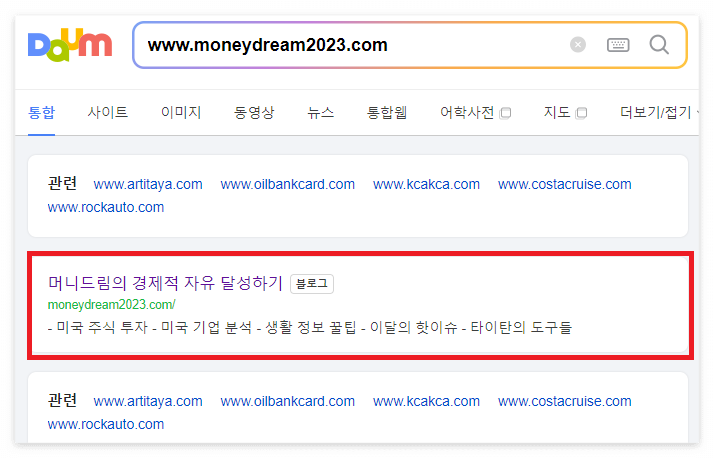 저품질이 걸리지 않은 블로그의 경우에는 아래와 같이 사이트가 표시됩니다.