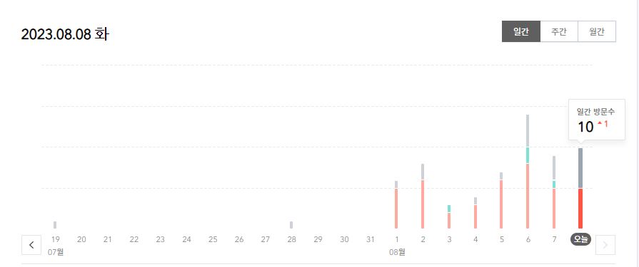 저품질에 걸린 블로그가 7월에 조회수 0 ~ 1 왔다갔다하다 8월부터 다시 조회수가 올라오고 있네요. 저품질에 걸리고 나서부터는 글을 하나도 발행하지 않았습니다.