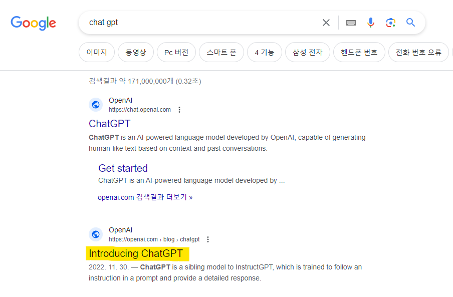 주어진 링크를 클릭합니다. 또는 구글에서 chat gpt를 검색합니다.