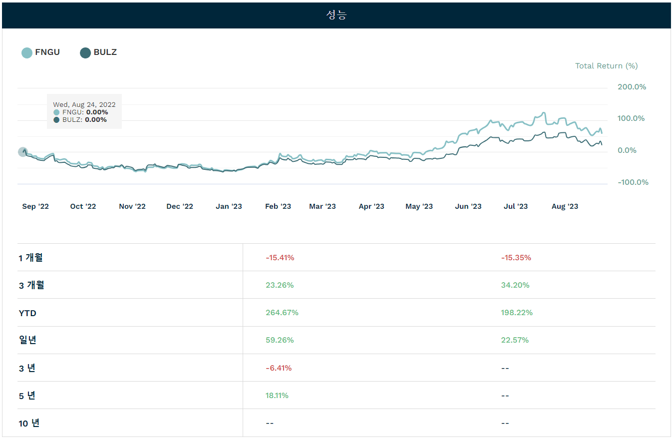 FNGU는 미국 상장 기술 및 임의 소비재 기업의 동일 가중 지수의 일일 가격 변동을 3배 추적합니다.