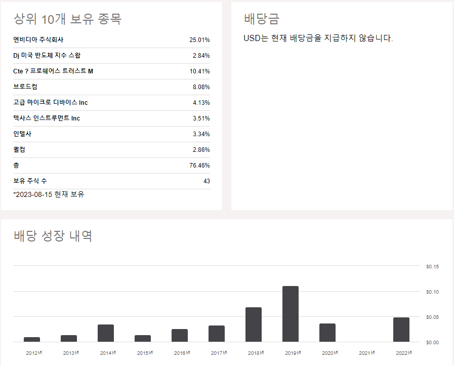- 장점: 다양한 반도체 기업의 주식을 포함하고 있어 투자 위험을 분산시킬 수 있습니다. 레버리지를 사용하지 않으므로, 시장 변동성에 비교적 안정적입니다.