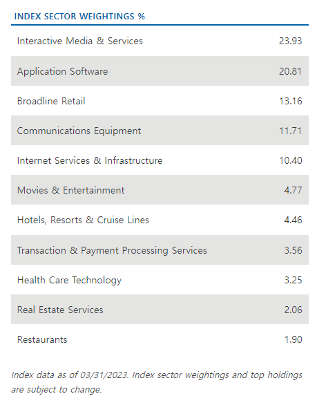 2019년에 출시된 WEBL ETF는 인터넷에서 수익의 최소 50%를 창출하는 회사에 중점을 둡니다.